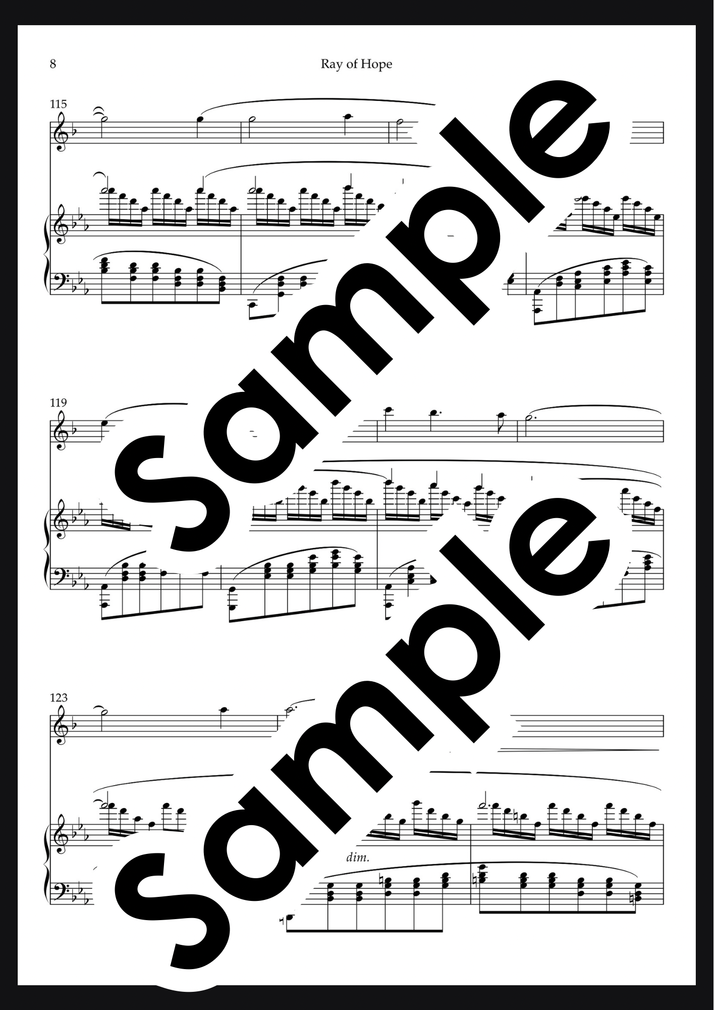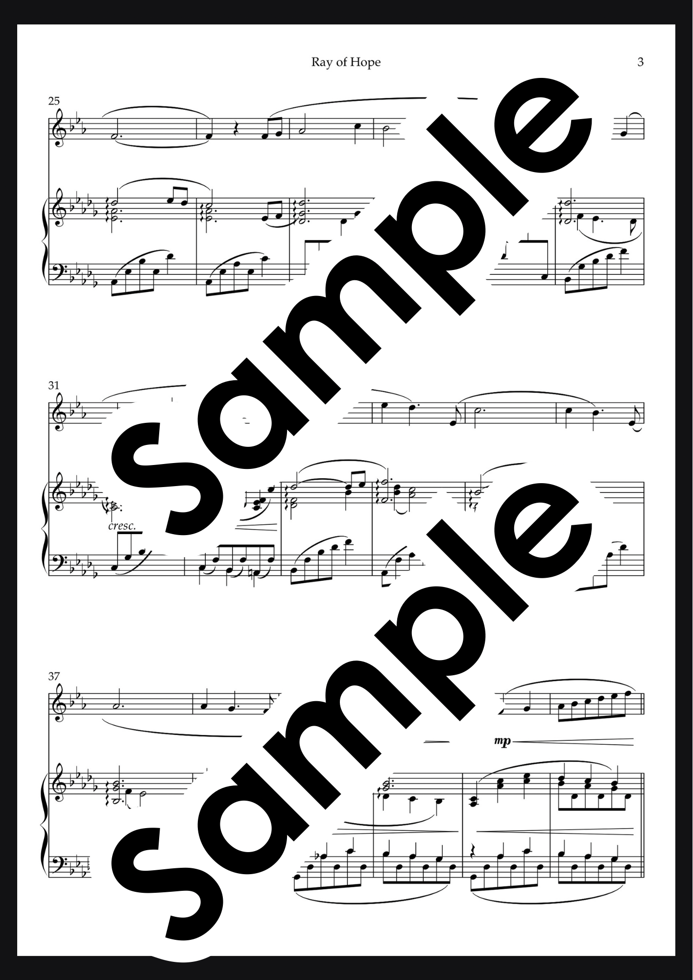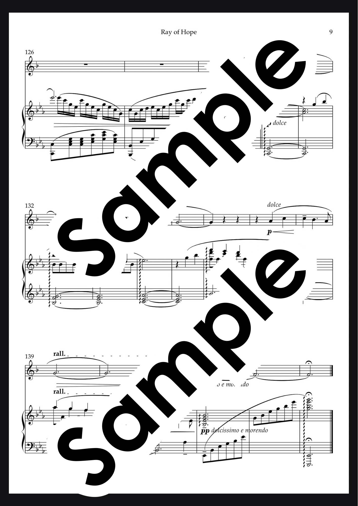 この曲においては「⼈々を優しく包み込み、時に輝かしく照らす光」として、また「天から降り注ぐ恵み」を感じながら演奏していただければ幸いです。